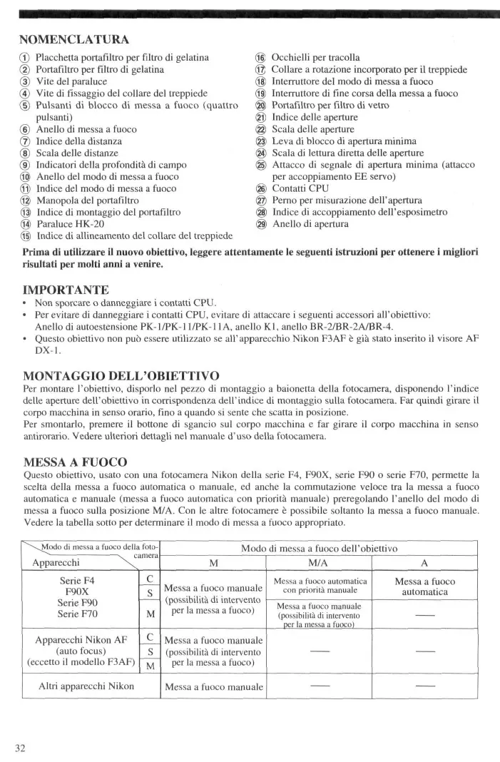 MANUALE UTENTE AF-I NIKKOR ED 400MM F/2.8D IF NIKON