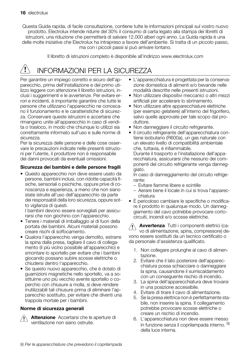 6. N'utilisez pas l'appareil si le diffuseur de l'ampoule d'éclairage n'est pas présent. 5) pour l'éclairage intérieur