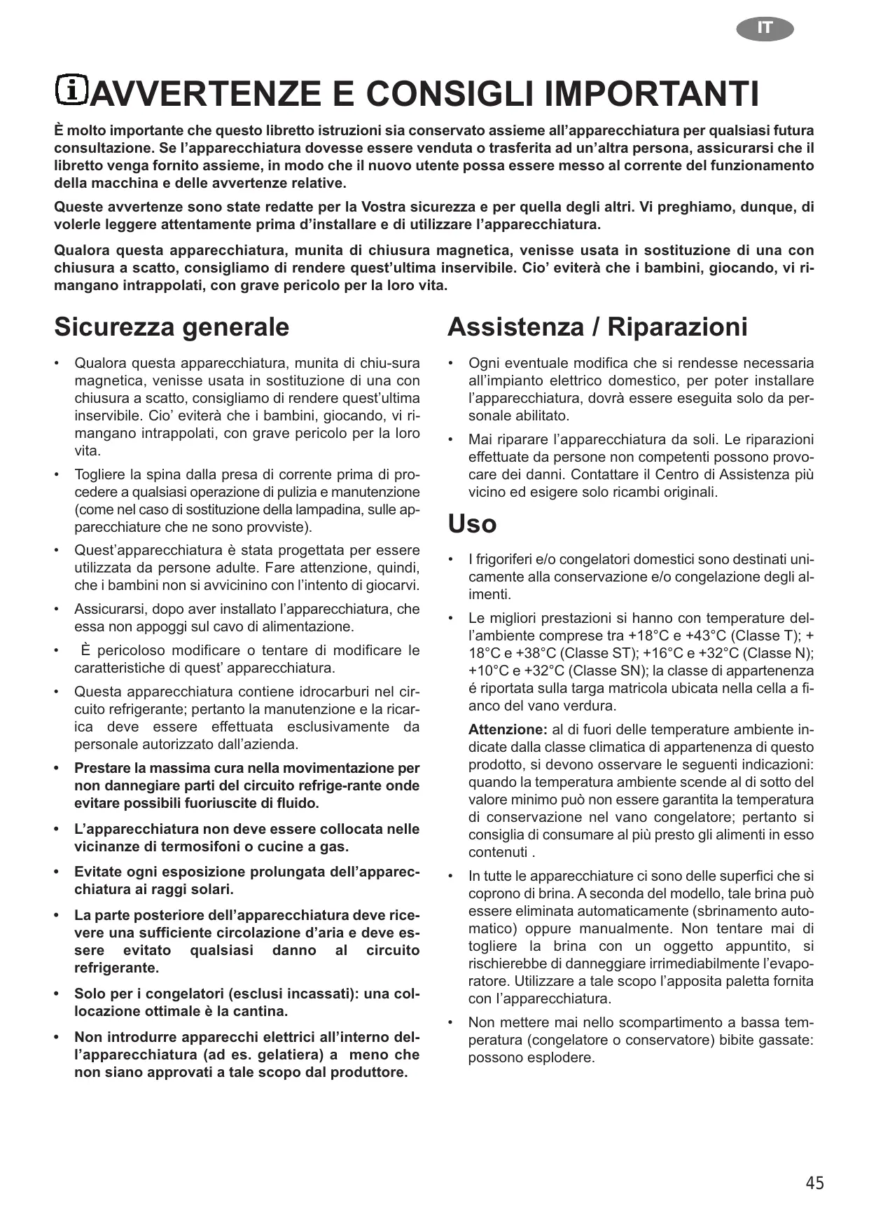 Avverenze e consigli importanti 45