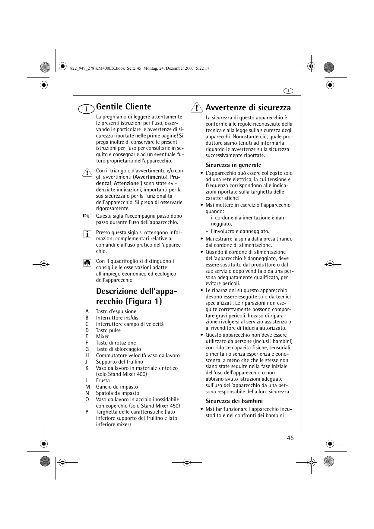 Descrizione dell'apparecchio (Figura 1)