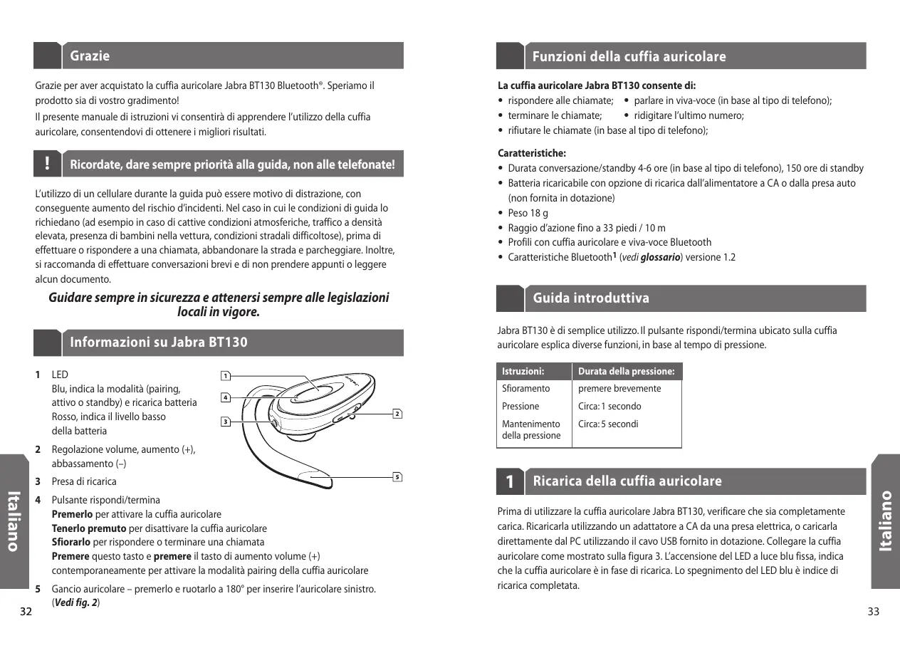 Scarica le istruzioni per il tuo écouteur Bluetooth in formato PDF gratuitamente! Trova il tuo manuale BT 130 - JABRA e riprendi in mano il tuo dispositivo elettronico. In questa pagina sono pubblicati tutti i documenti necessari per l'utilizzo del tuo dispositivo. BT 130 del marchio JABRA.