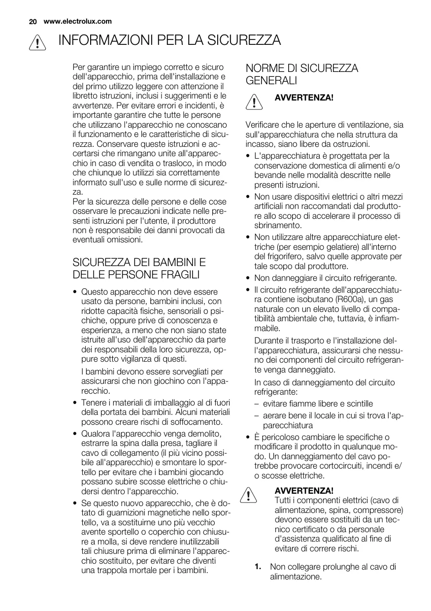 Grazie per aver acquistato un'apparecchiatura Electrolux. Avete scelto un prodotto che ha alle spalle decenni di esperienza professionale e innovazione. Ingegnoso ed elegante, à stato progettato pensando a voi. Quindi, in qualsiasi momento desiderate utilizzaro, potete esser certi di ottenere sempre i migliori risultati. Benvenuti in Electrolux. Visitate il nostro sito web per: ricevere consigli, scaricare i nostri opuscol, eliminare eventuali anomalie, ottenere informazioni sull'assistenza. www.electrolux.com registrare il vostro prodotto e ricevere un servizio migliore: www.electrolux.com/productregistration acquistare accessori, materiali di consumo e ricambi originali per la vostra apparecchiatura: www.electrolux.com/shop