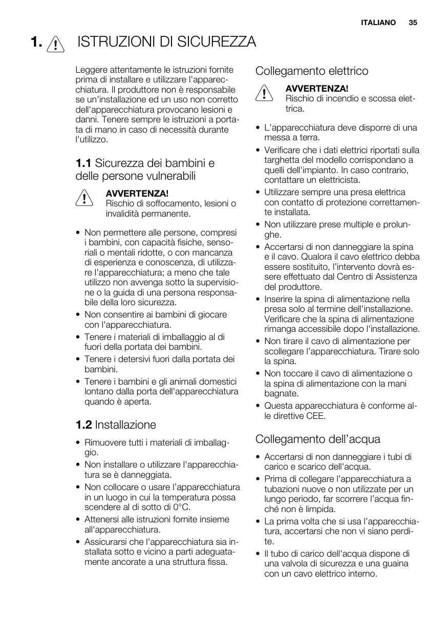 - Il tubo di carico dell'acqua dispone di una valvola di sicurezza e una guaina con un cavo elettrico interno. 36 www.electrolux.com AVVERTENZA! Pericolo di tensione.
