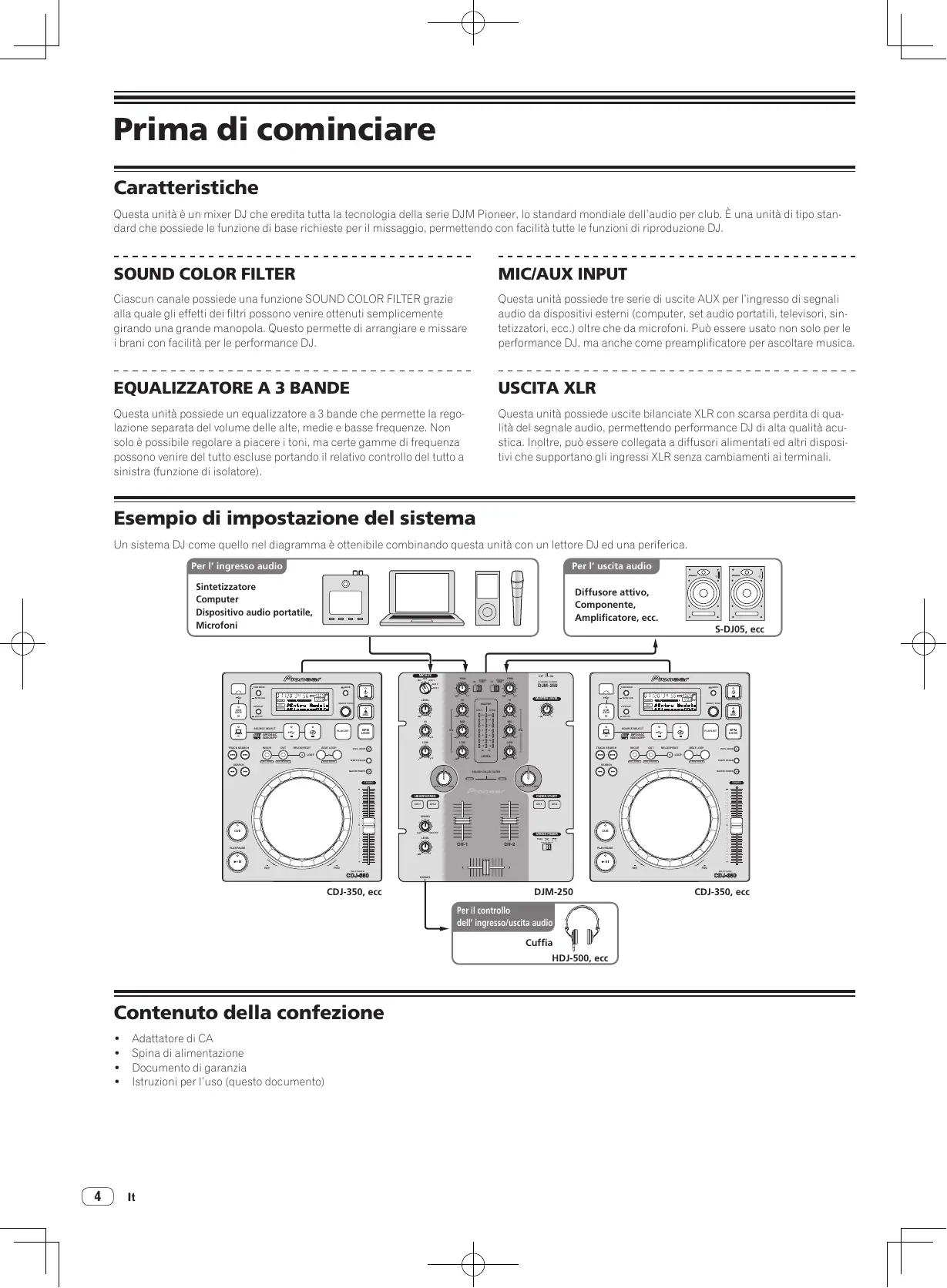 Prima di cominciare Caratteristiche Questa unità è un mixer DJ che eredita tutta la tecnologia della serie DJM Pioneer, lo standard mondiale dell’audio per club. È una unità di tipo standard che possiede le funzione di base richieste per il missaggio, permettendo con facilità tutte le funzioni di riproduzione DJ.