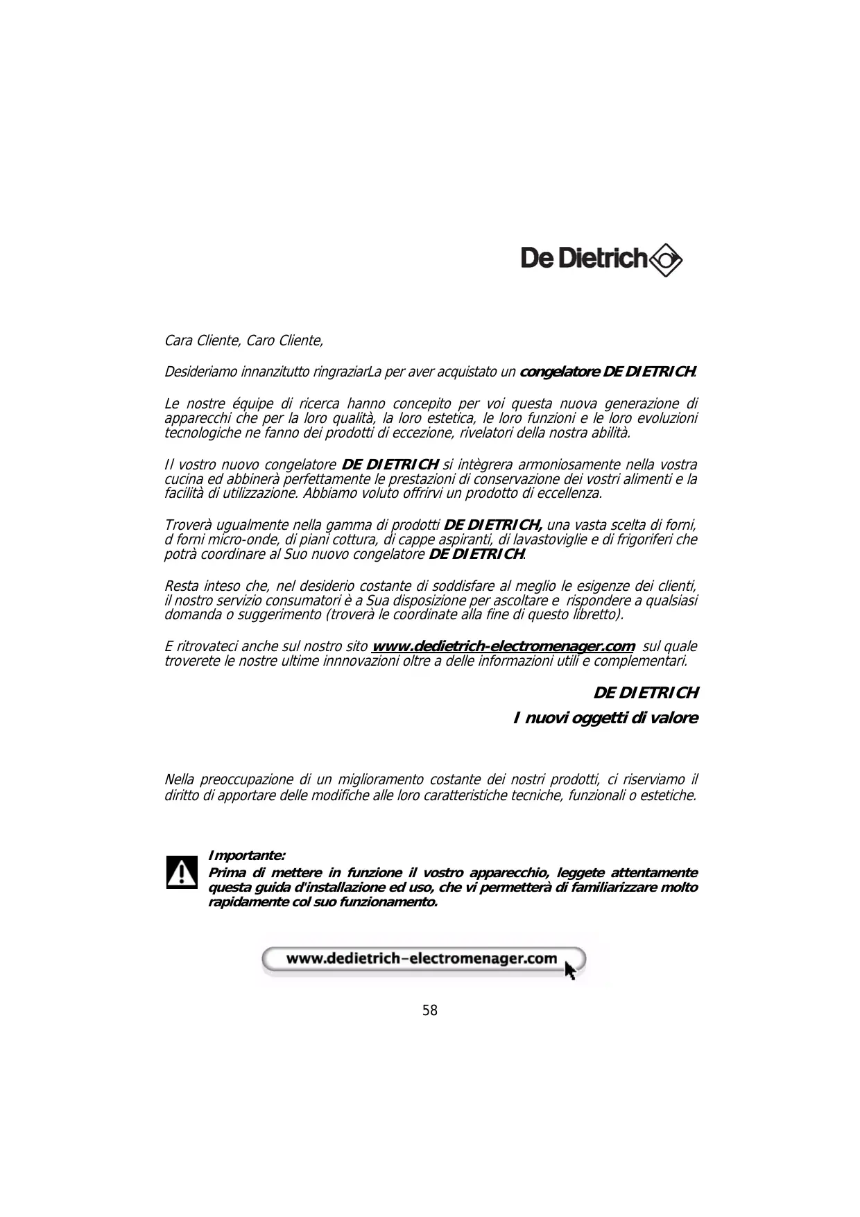 Scarica le istruzioni per il tuo Congelatore in formato PDF gratuitamente! Trova il tuo manuale 6545UNX - DE DIETRICH e riprendi in mano il tuo dispositivo elettronico. In questa pagina sono pubblicati tutti i documenti necessari per l'utilizzo del tuo dispositivo. 6545UNX del marchio DE DIETRICH.