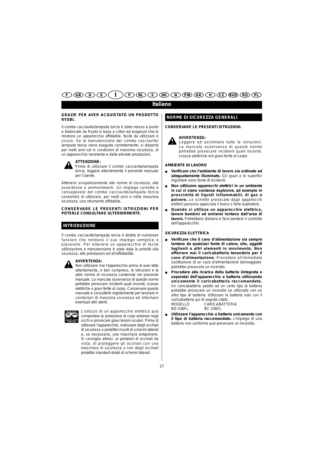 BD-336FL - RYOBI - Manuale utente e istruzioni gratuiti