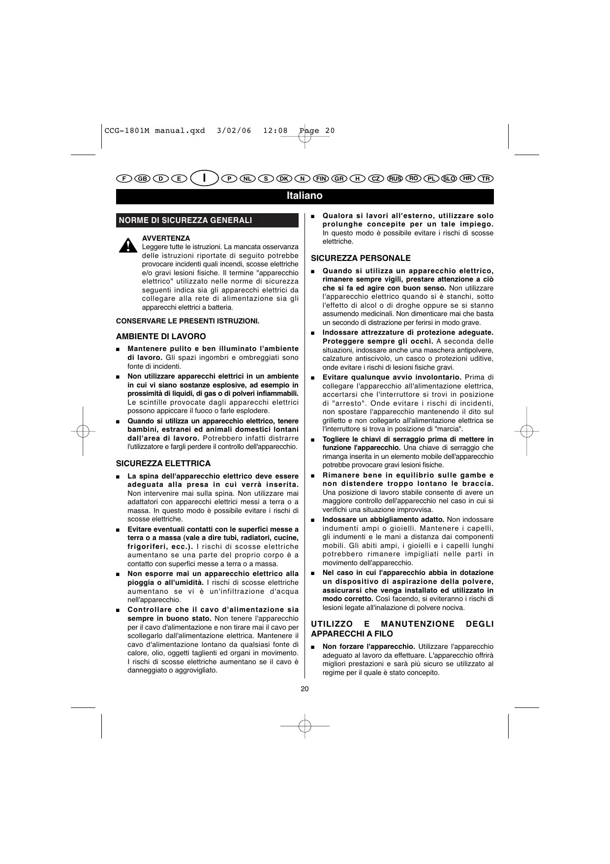 Scarica le istruzioni per il tuo Indefinito in formato PDF gratuitamente! Trova il tuo manuale CCG-1801M - RYOBI e riprendi in mano il tuo dispositivo elettronico. In questa pagina sono pubblicati tutti i documenti necessari per l'utilizzo del tuo dispositivo. CCG-1801M del marchio RYOBI.