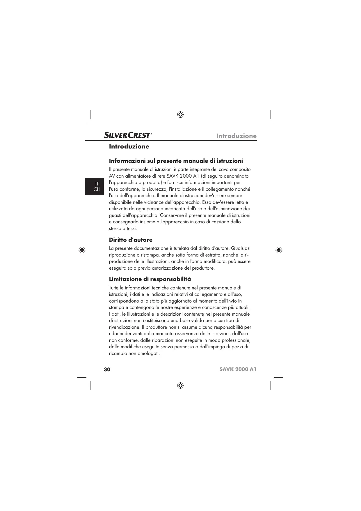 Il presente manuale di istruzioni è parte integrante del cavo composto AV con alimentatore di rete SAVK 2000 A1 (di seguito denominato l'apparecchio o prodotto) e fornisce informazioni importanti per l'uso conforme, la sicurezza, l'installazione e il collegamento nonché l'uso dell'apparecchio. Il manuale di istruzioni devEssere sempre disponibile nelle vicinanze dell'apparecchio. Esso devEssere letto e utilizzato da agli persona incaricata dell'uso e dell'eliminazione dei guasti dell'apparecchio. Conservare il presente manuale di istruzioni e consegnarlo insieme all'apparecchio in caso di cessione dello stesso a terzi.