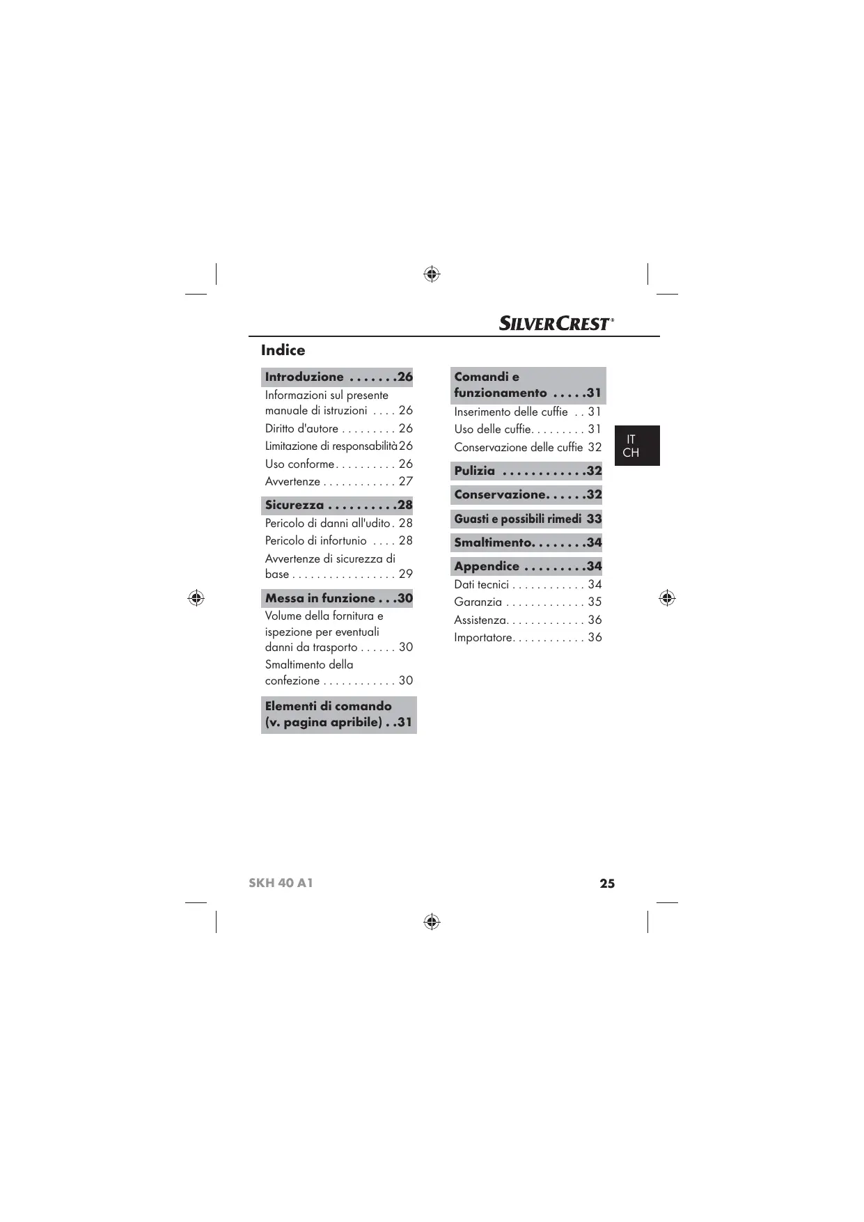 Scarica le istruzioni per il tuo Cuffie in formato PDF gratuitamente! Trova il tuo manuale SKH 40 A1 - SILVERCREST e riprendi in mano il tuo dispositivo elettronico. In questa pagina sono pubblicati tutti i documenti necessari per l'utilizzo del tuo dispositivo. SKH 40 A1 del marchio SILVERCREST.