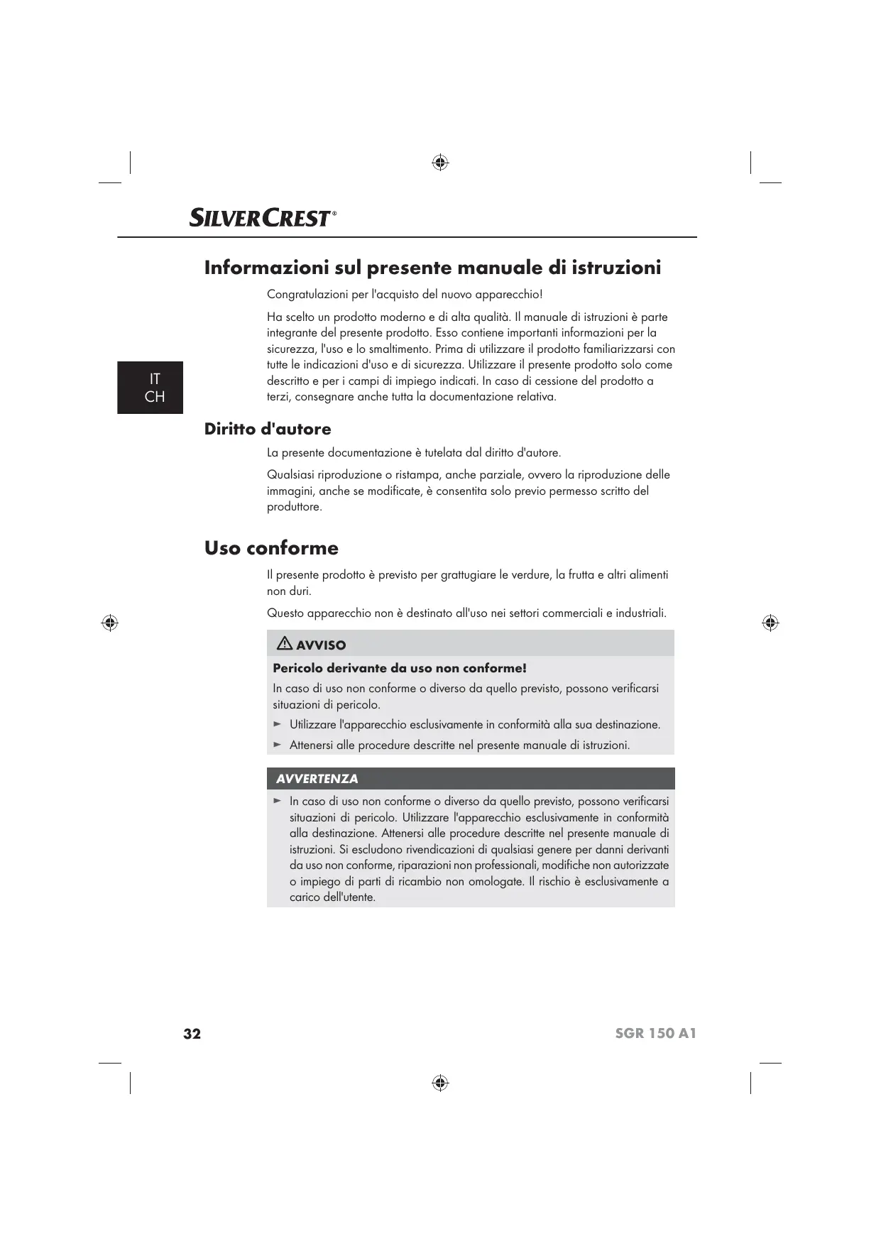 MANUALE UTENTE SGR 150 A1 SILVERCREST