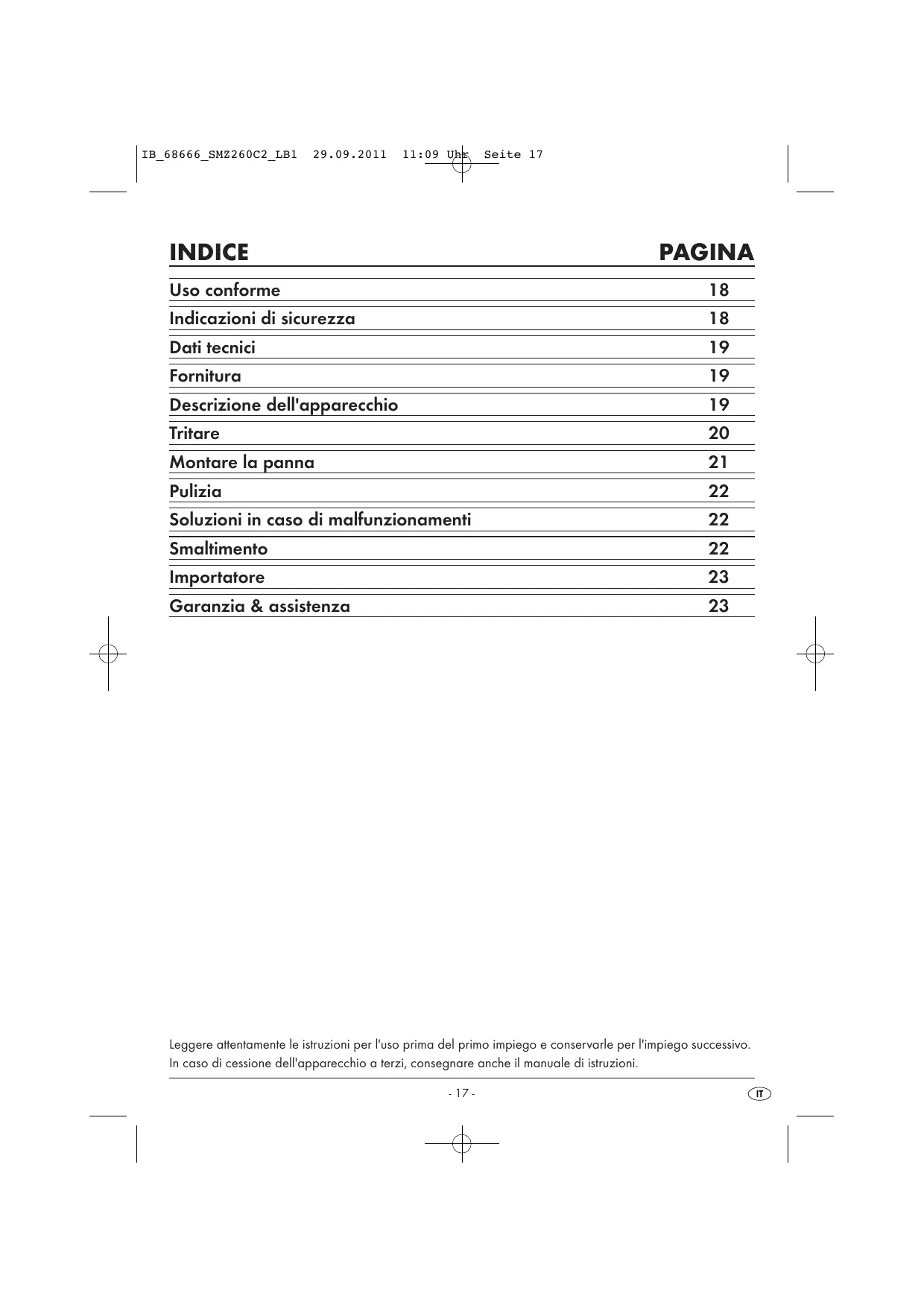 Scarica le istruzioni per il tuo in formato PDF gratuitamente! Trova il tuo manuale SMZ 260 C2 - SILVERCREST e riprendi in mano il tuo dispositivo elettronico. In questa pagina sono pubblicati tutti i documenti necessari per l'utilizzo del tuo dispositivo. SMZ 260 C2 del marchio SILVERCREST.