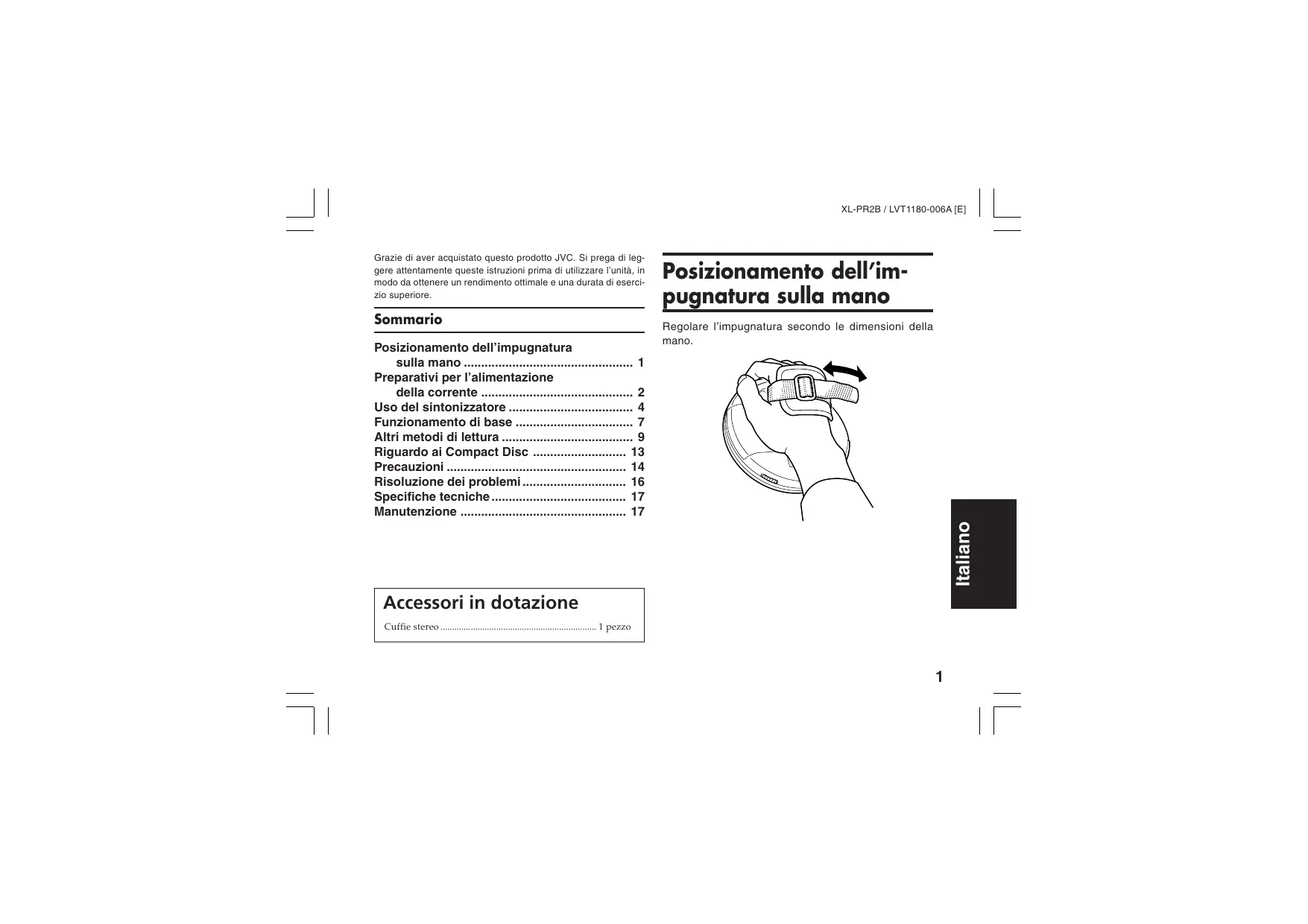 Scarica le istruzioni per il tuo Lettore CD in formato PDF gratuitamente! Trova il tuo manuale XL-PR2B - JVC e riprendi in mano il tuo dispositivo elettronico. In questa pagina sono pubblicati tutti i documenti necessari per l'utilizzo del tuo dispositivo. XL-PR2B del marchio JVC.