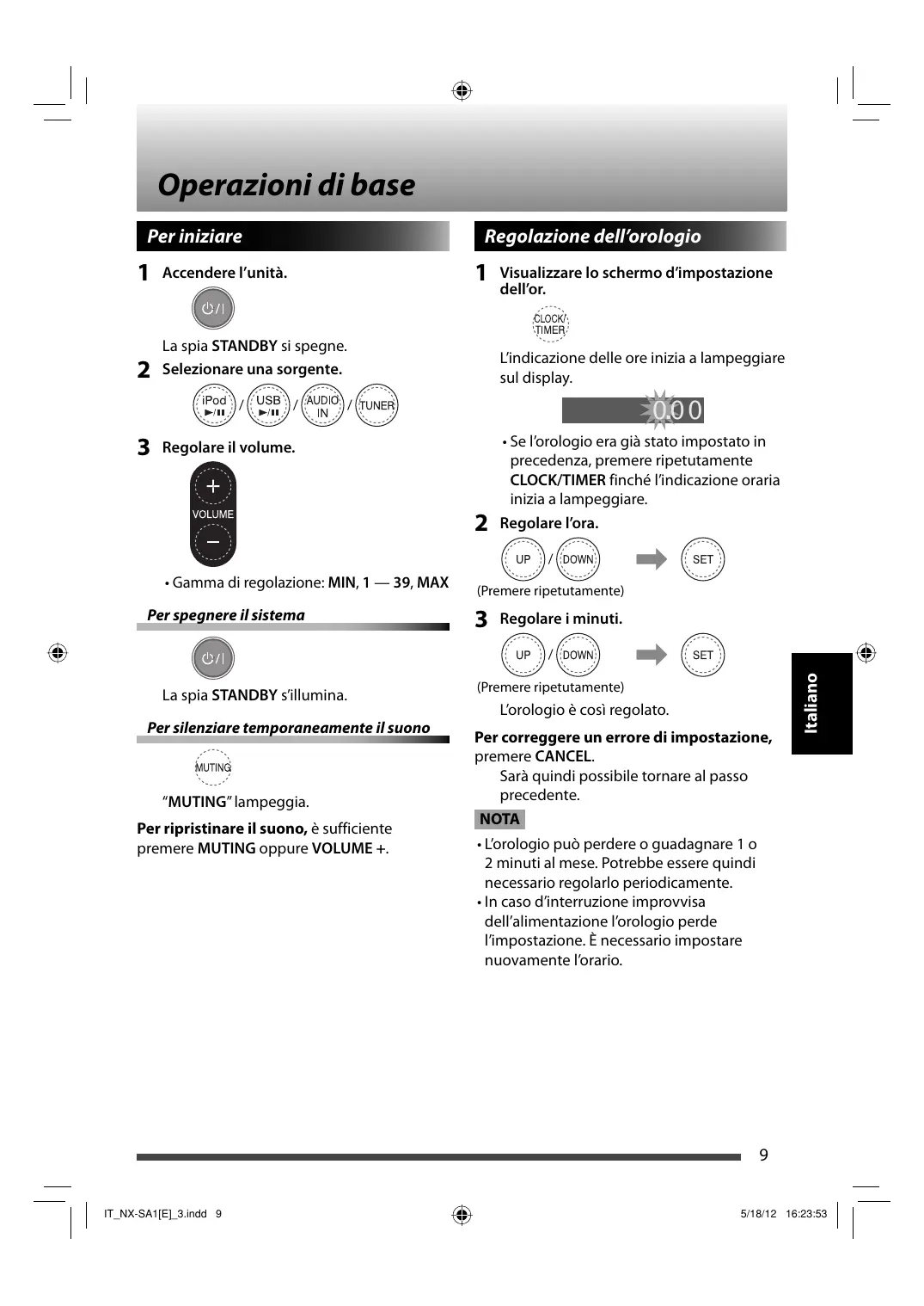 Le regolazioni o le regolazioni vengono cancellate improvvisamente prima di completare l’operazione. \ Esiste un limite di tempo. Ripetere la procedura. È impossibile utilizzare il telecomando per gestire il sistema. \ Il segnale del telecomando incontra un ostacolo prima di raggiungere il sensore sul sistema. \ La batteria è scarica. Non si sente alcun suono. \ Regolare il volume. \ Le cuffie sono collegate. Operazioni con l’iPod È impossibile riprodurre i file dell’iPod. \ La batteria dell’iPod è poco o completamente scarica. Deve essere ricaricata.