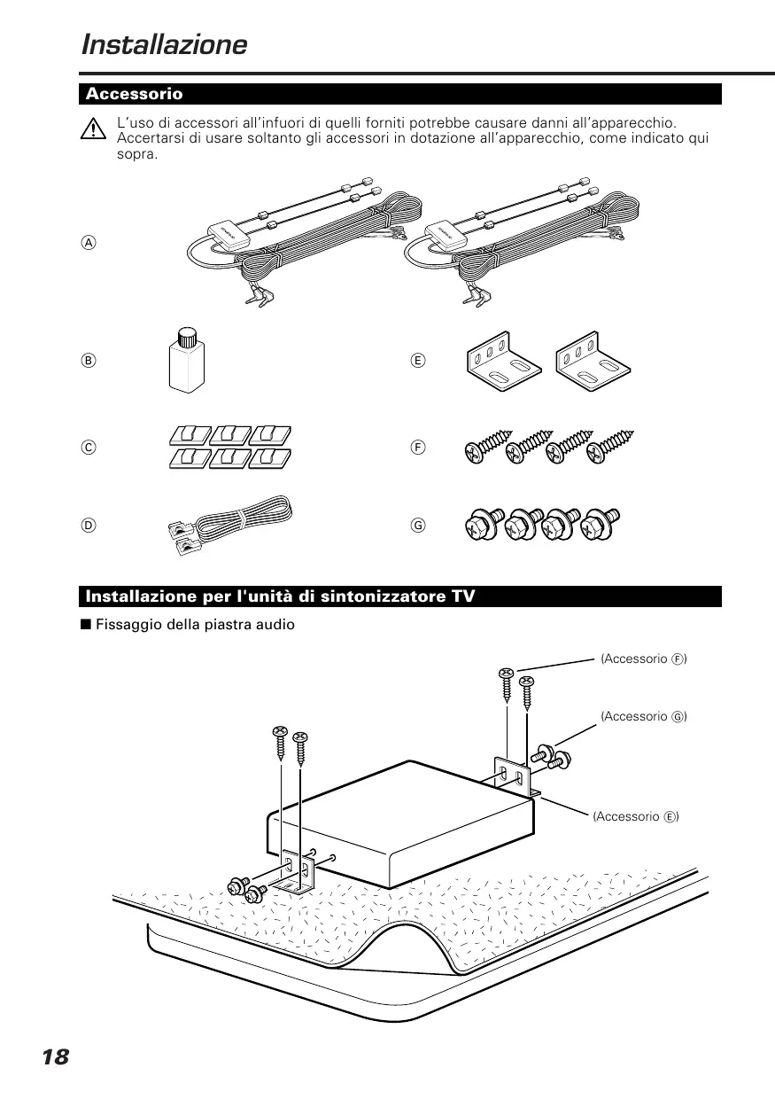 Installazione per l'unità di sintonizzatore TV ■ Fissaggio della piastra audio (Accessorio F) (Accessorio G) (Accessorio E)