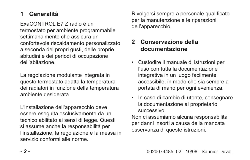 Scarica le istruzioni per il tuo Caldaia a gas in formato PDF gratuitamente! Trova il tuo manuale EXACONTROL E7 Z RADIO - SAUNIER DUVAL e riprendi in mano il tuo dispositivo elettronico. In questa pagina sono pubblicati tutti i documenti necessari per l'utilizzo del tuo dispositivo. EXACONTROL E7 Z RADIO del marchio SAUNIER DUVAL.