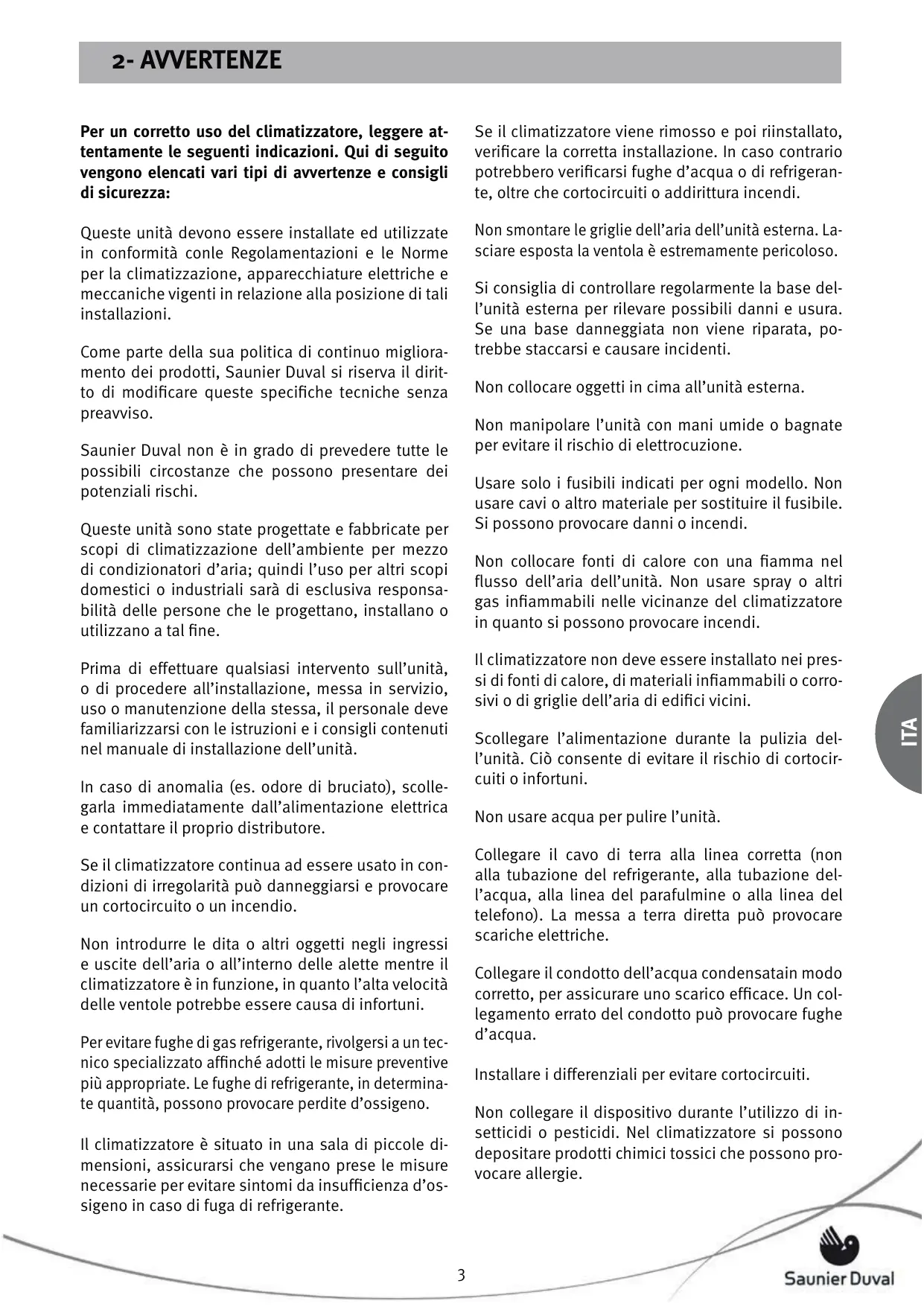 Duval qui, en fonction des besoins, offre des conditions de contrat personnalisées. L’installation frigorifique doit être réalisée avec les tuyaux spécifiques à la climatisation (ATTENTION ! Ne jamais utiliser de tuyaux de plomberie). Cet appareil contient du fluide frigorifère R-410A. Ne pas l’évacuer dans l’atmosphère : le R-410A est un