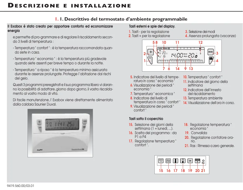 1. 1. Descrittivo del termostato d'ambiente programmabile