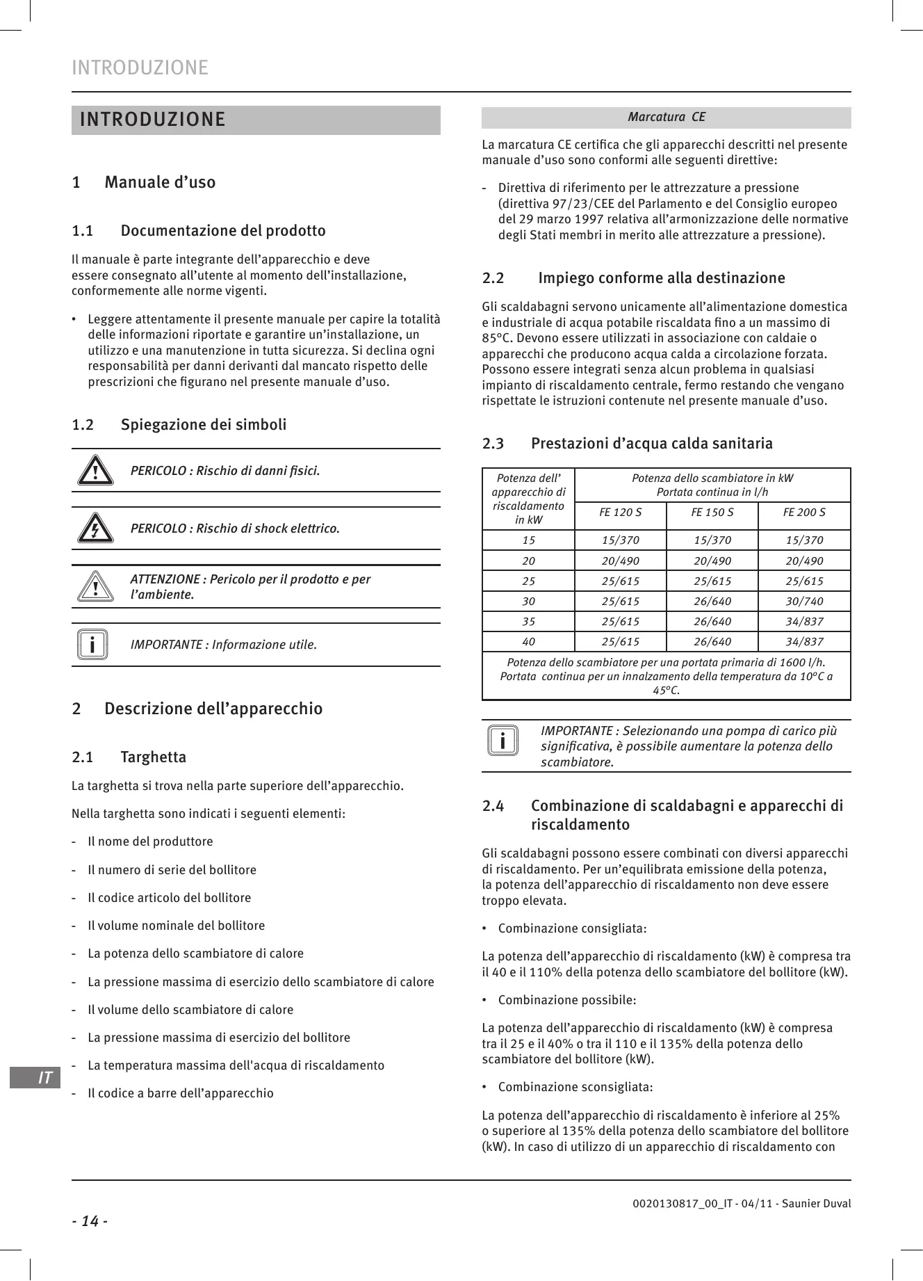 MANUALE UTENTE FE 200 S SAUNIER DUVAL
