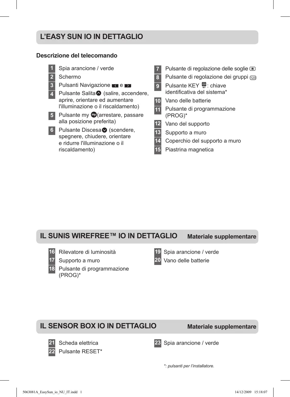Scarica le istruzioni per il tuo Commande d'objets connectés in formato PDF gratuitamente! Trova il tuo manuale EASY SUN IO - SOMFY e riprendi in mano il tuo dispositivo elettronico. In questa pagina sono pubblicati tutti i documenti necessari per l'utilizzo del tuo dispositivo. EASY SUN IO del marchio SOMFY.