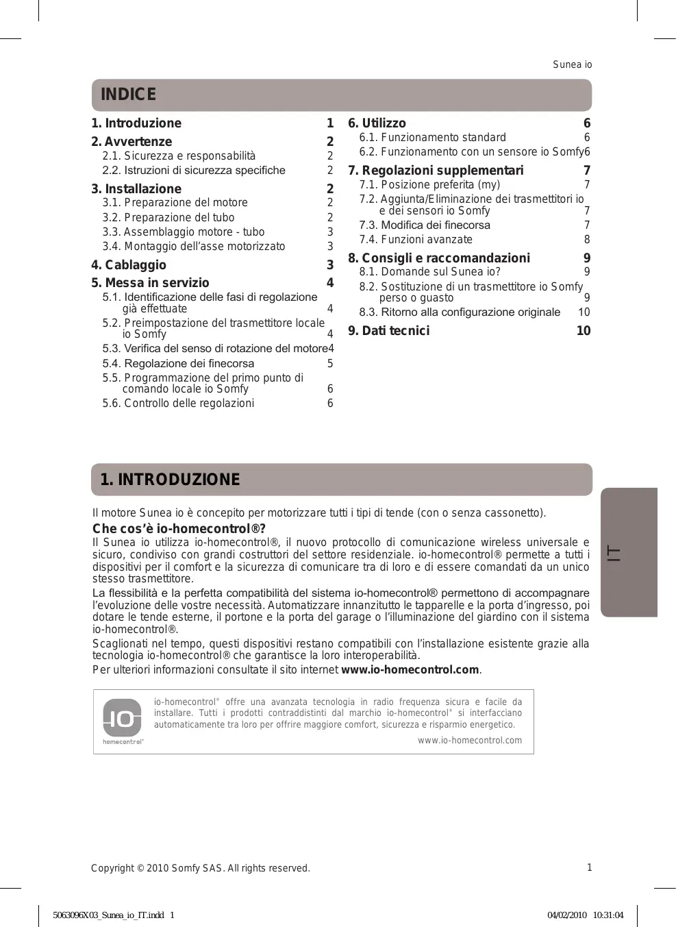 Copyright © 2010 Somfy SAS. All rights reserved.