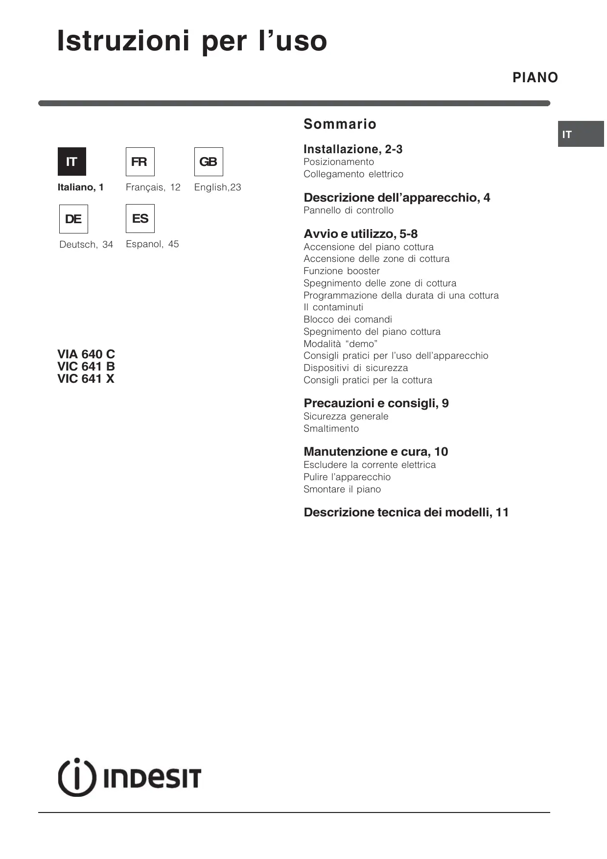 VIA 641 X - Piano cottura INDESIT - Manuale utente e istruzioni gratuiti