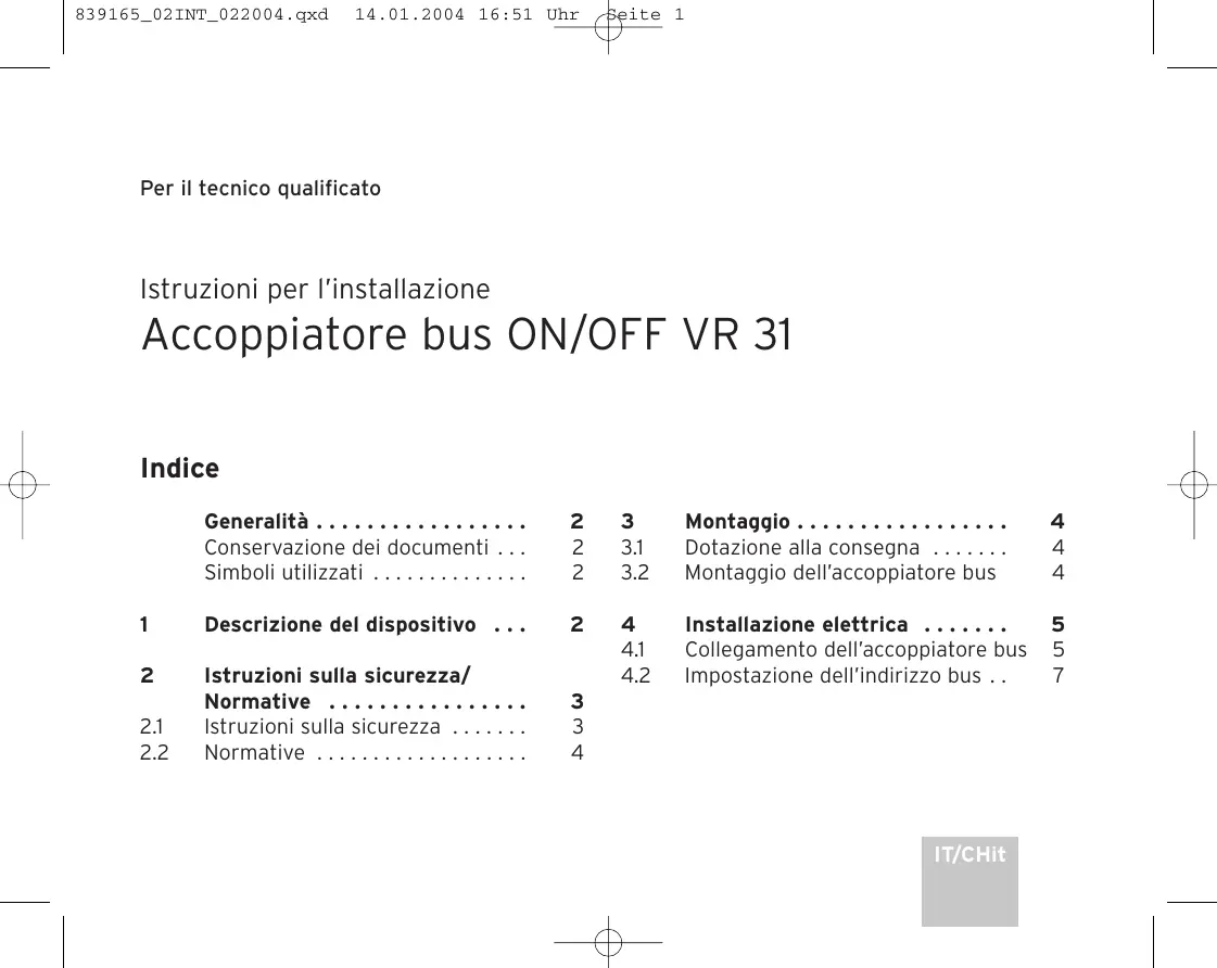 Notice d’installation - Coupleur de bus à commutation VR 31