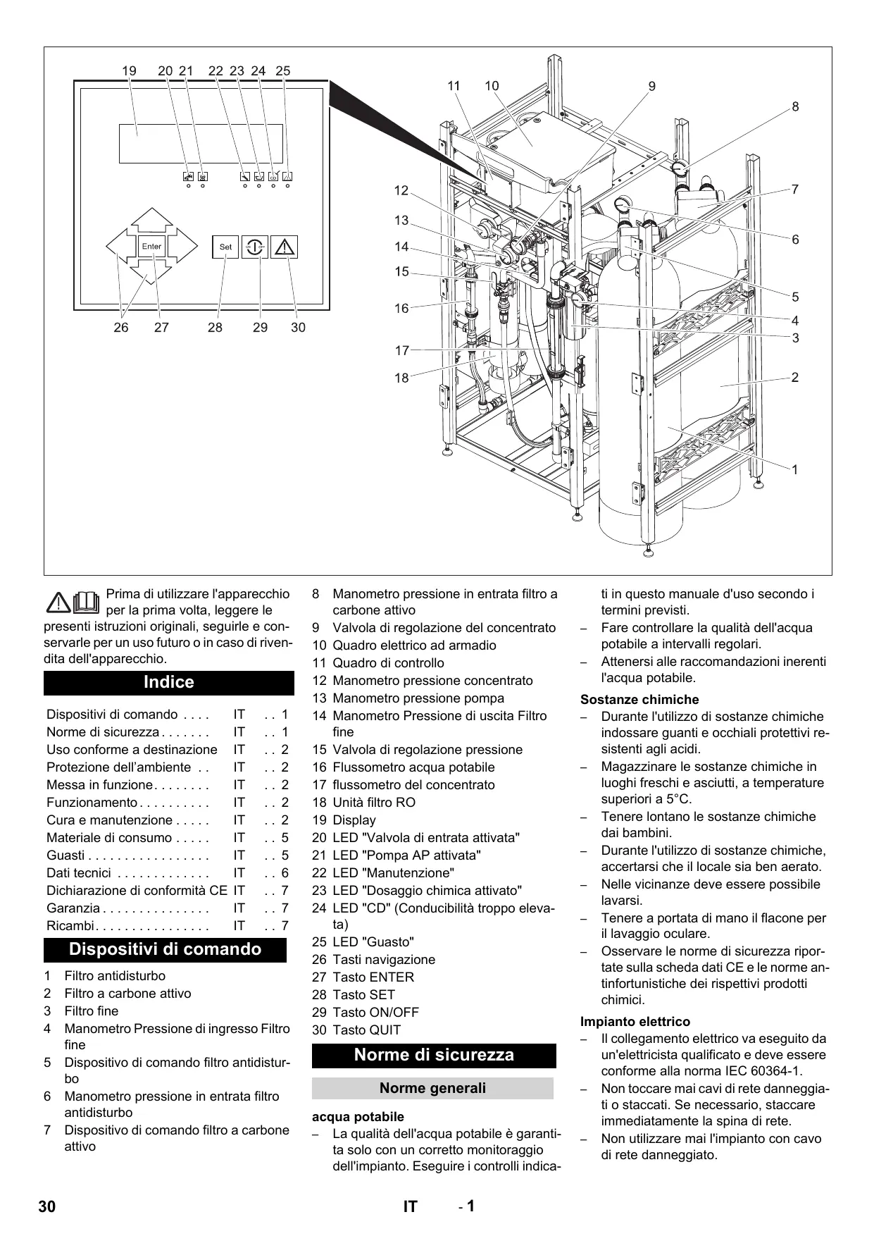 Danger de santé par une mauvaise qualité d'eau potable. Pour pouvoir garantir la qua- lité d'eau potable, les contrôles doivent être accomplis au terme fixé par la suite le plan de soins. Si des différences de l'état nor- mal ne peuvent pas être éliminées par les mesures données, la production d'eau po- table doit être arrêtée et le service après- vente Kärcher doit être informé.