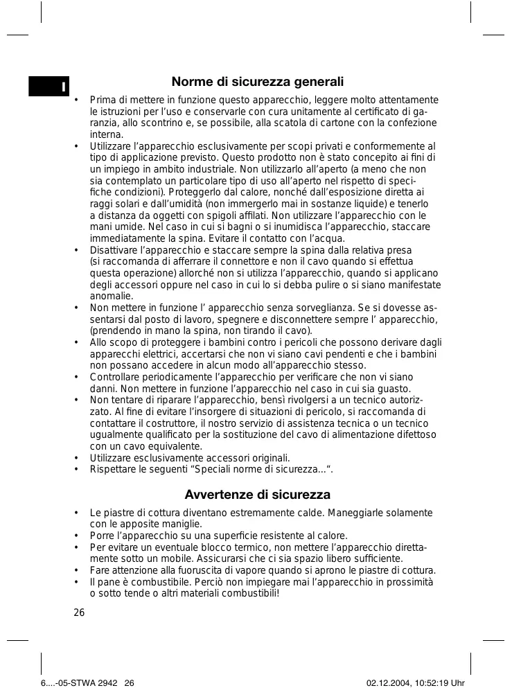 - Le piastre di cottura diventano estremamente calde. Maneggiarle solamente con le apposite maniglie.