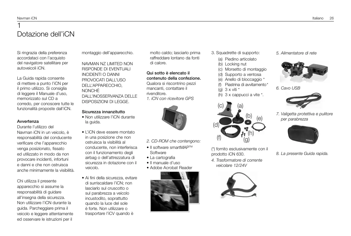 Il software smartMAPTM Software La cartografia Il manuale duso Adobe Acrobat Reader (*) fornito esclusivamente con il prodotto iCN 630.