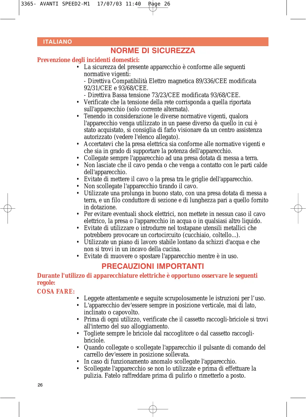 - Leggete attentamente e seguite scrupolosamente le istruzioni per l’uso.