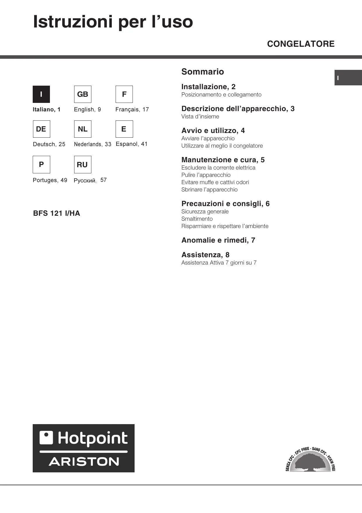 BFS 121 I/HA - Congelatore HOTPOINT - Manuale utente e istruzioni gratuiti
