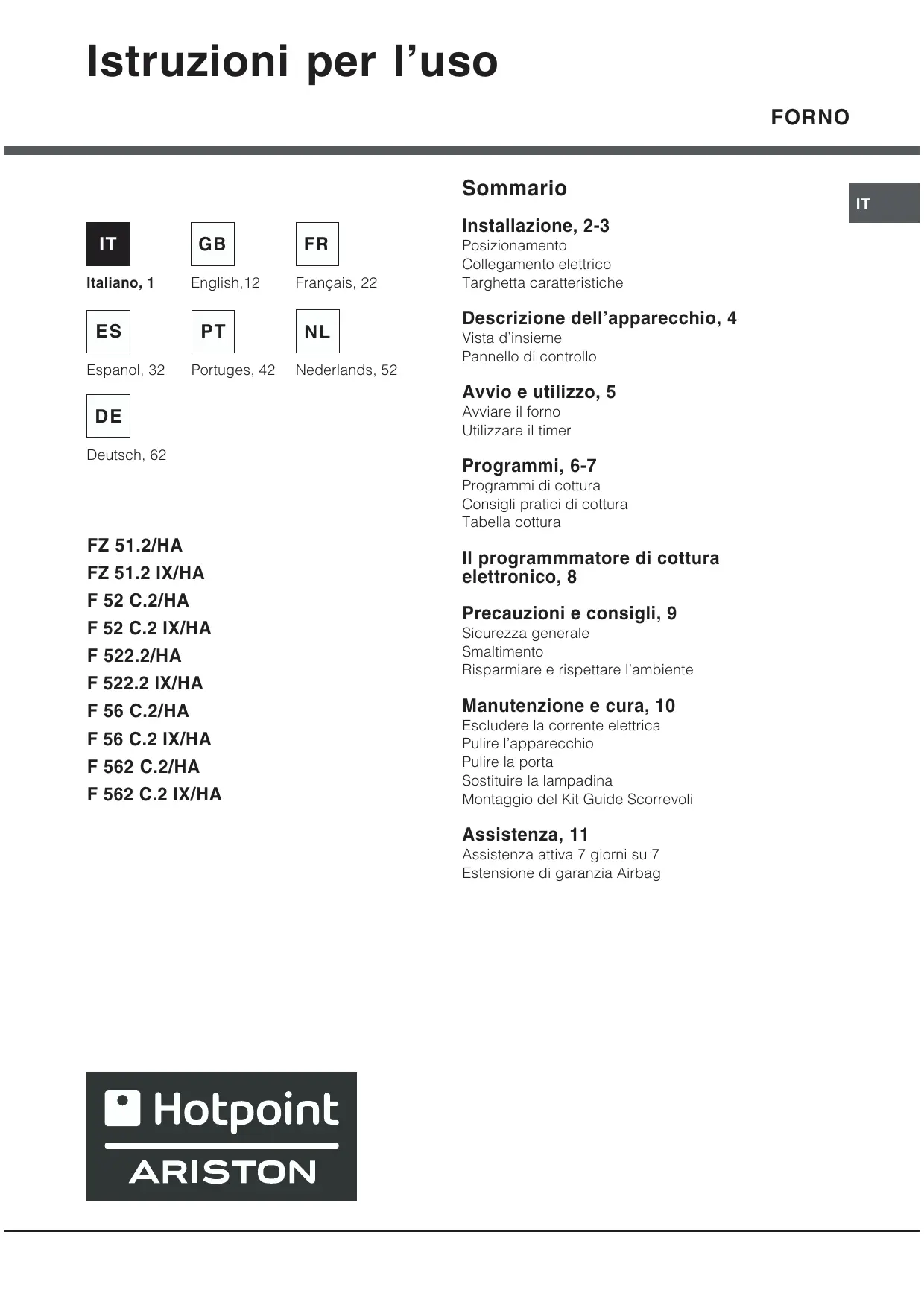 MANUALE UTENTE FZ 51.2 IX/HA HOTPOINT