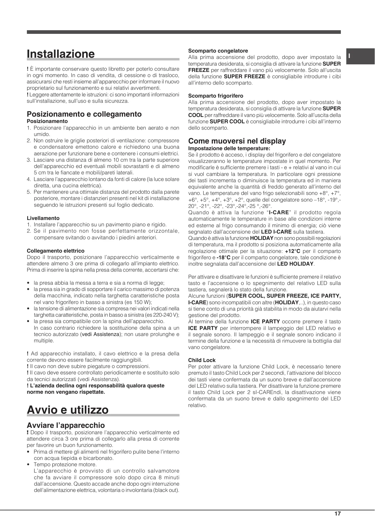 - L'apparecchio deve essere usato per conservare e congelare cibi, solo da persona adulte e secondo le istruzioni riportate in questo libretto.