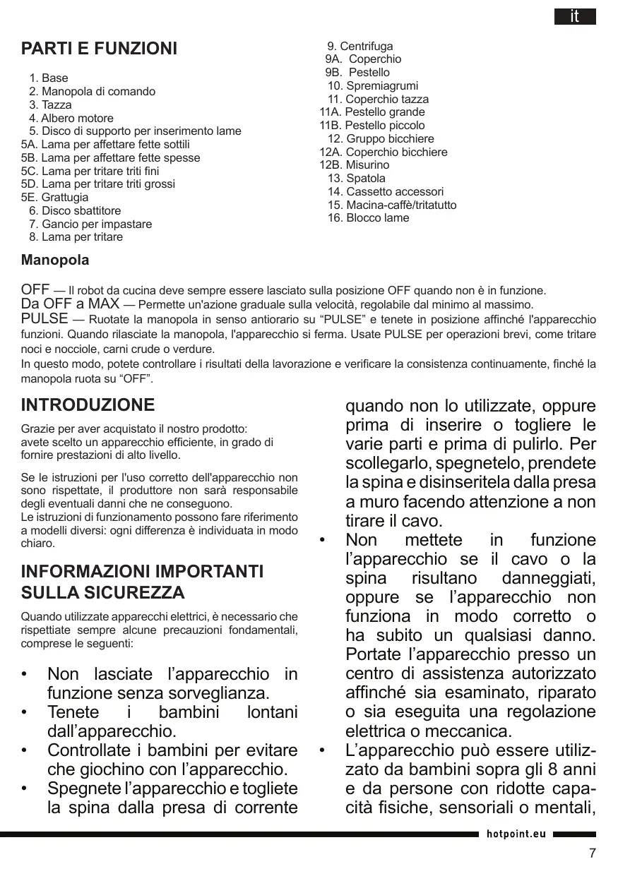 FP 1009 AC0 - Robot da cucina HOTPOINT - Manuale utente e istruzioni gratuiti