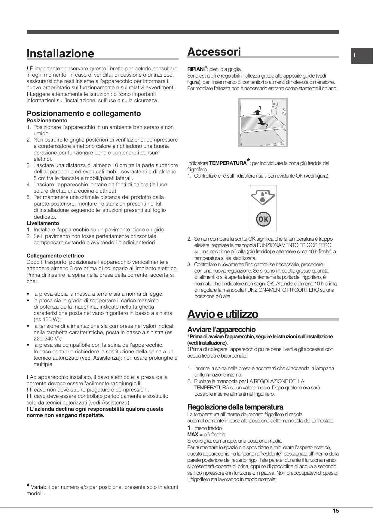 Indicatore TEMPERATURA : per individuare la zona più fredda del frigorifero. 1. Controllare che sull’indicatore risulti ben evidente OK (vedi figura).