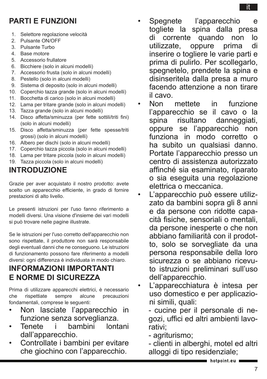 HB 0705 AB0 - Robot da cucina HOTPOINT - Manuale utente e istruzioni gratuiti
