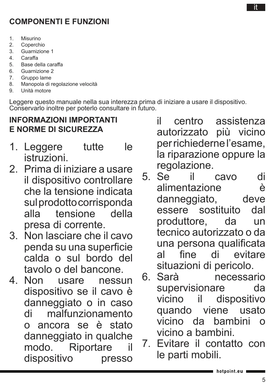 TB 050 DR0 - Frullatore HOTPOINT - Manuale utente e istruzioni gratuiti