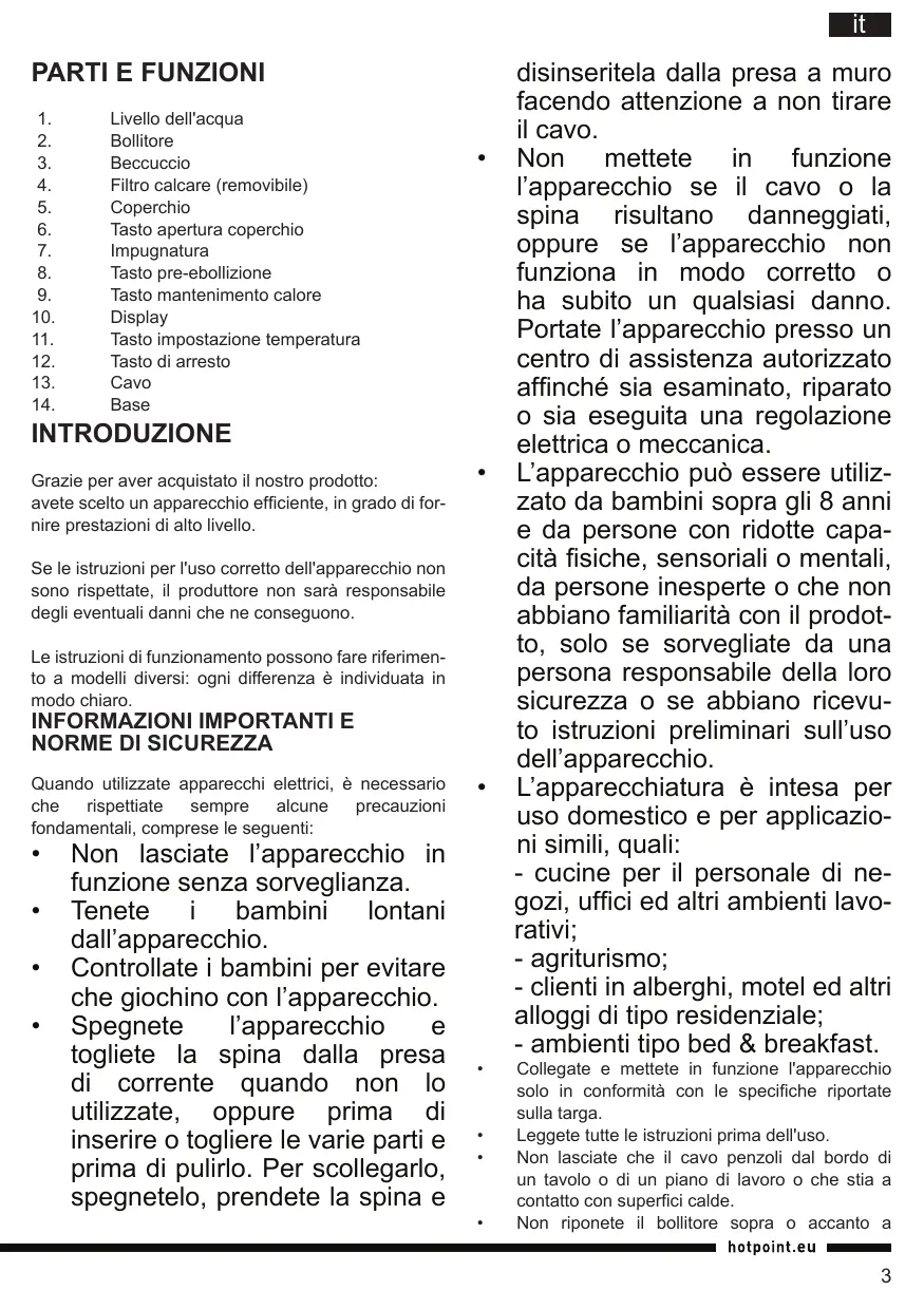 WK 24E AB0 - Bollitore elettrico HOTPOINT - Manuale utente e istruzioni gratuiti
