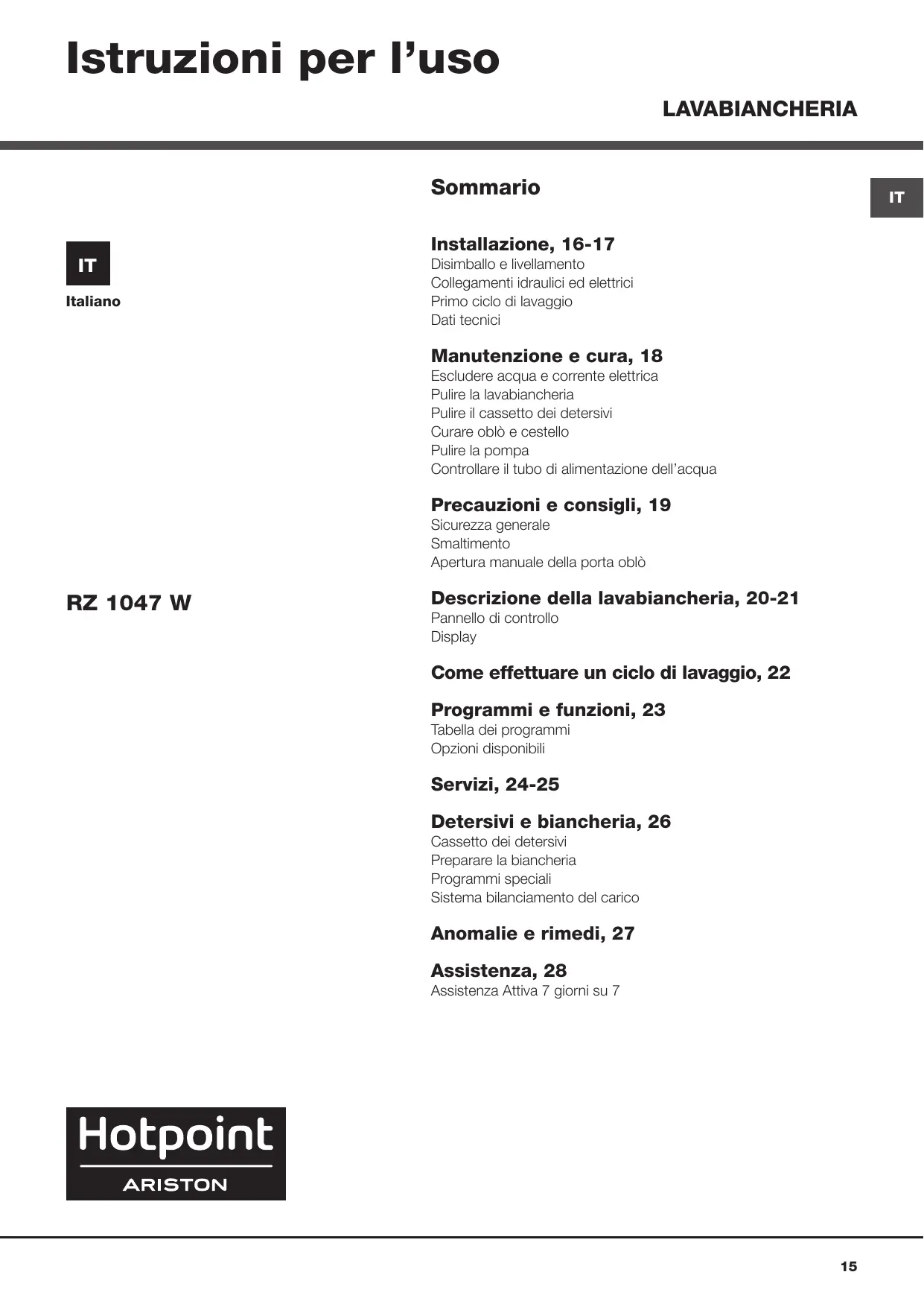 MANUALE UTENTE RZ 1047 W EU HOTPOINT