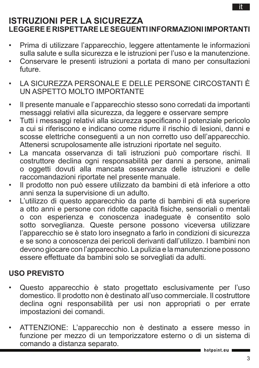 MANUALE UTENTE WK 24E UP0 HOTPOINT