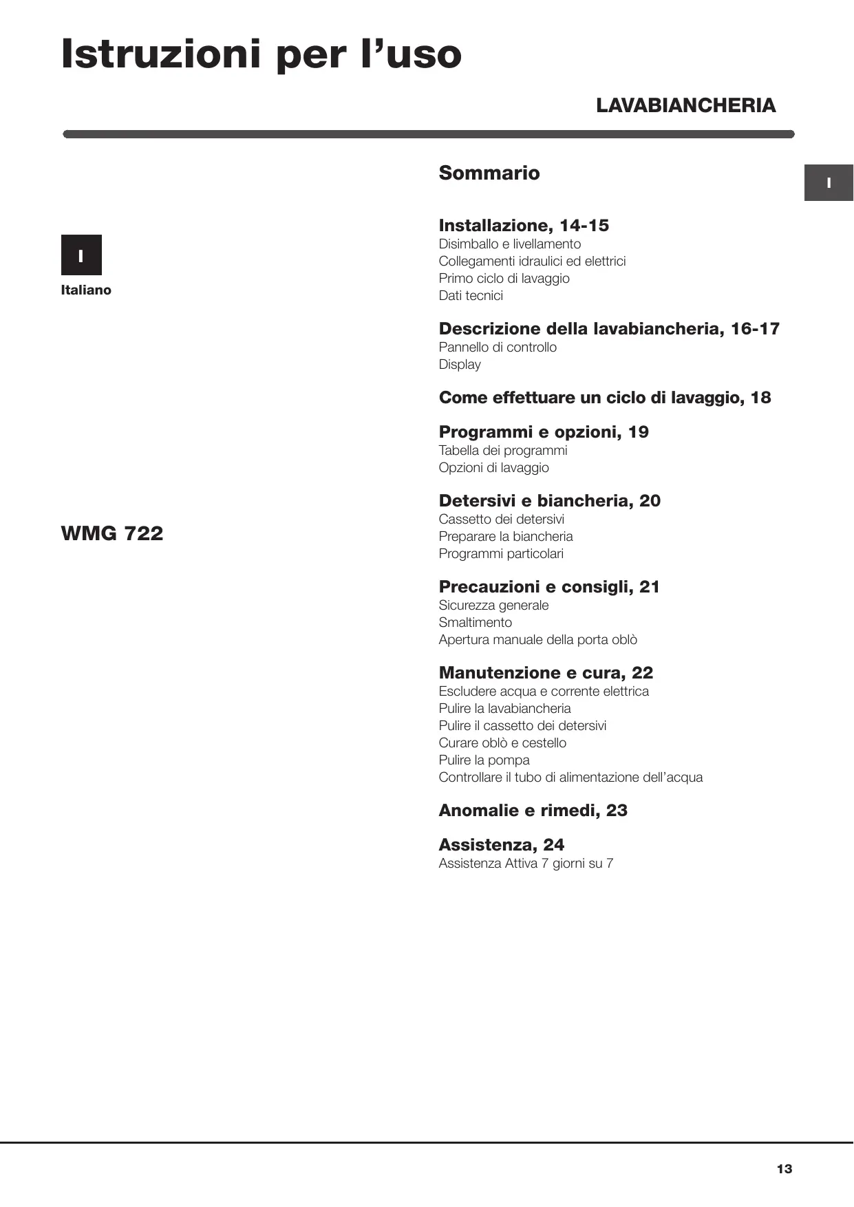 MANUALE UTENTE WMG 722S EU HOTPOINT