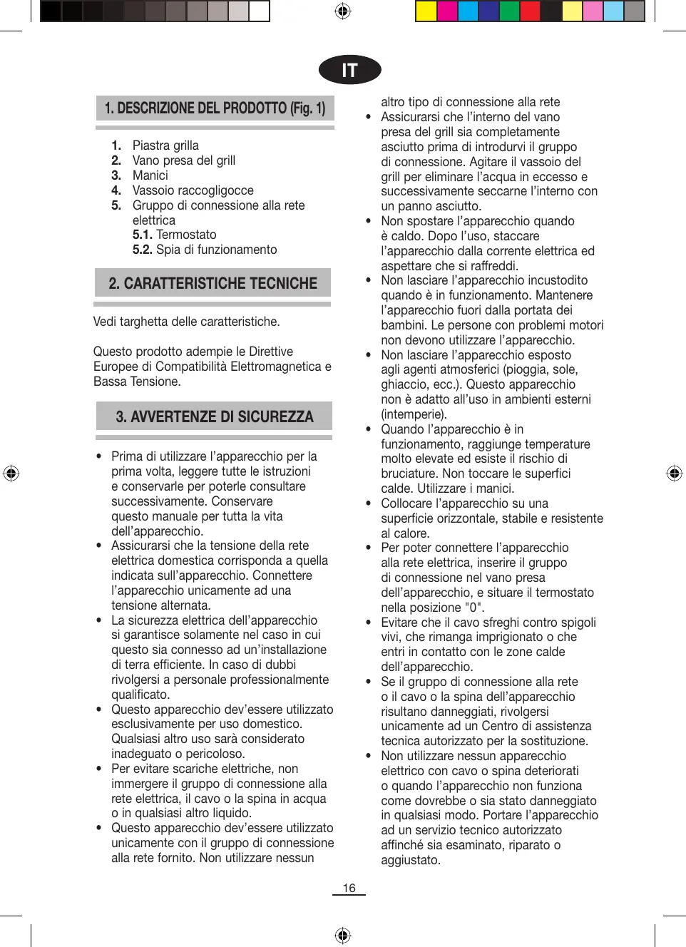 - Prima di utilizzare l’apparecchio per la prima volta, leggere tutte le istruzioni e conservarle per poterle consultare successivamente. Conservare questo manuale per tutta la vita dell’apparecchio.