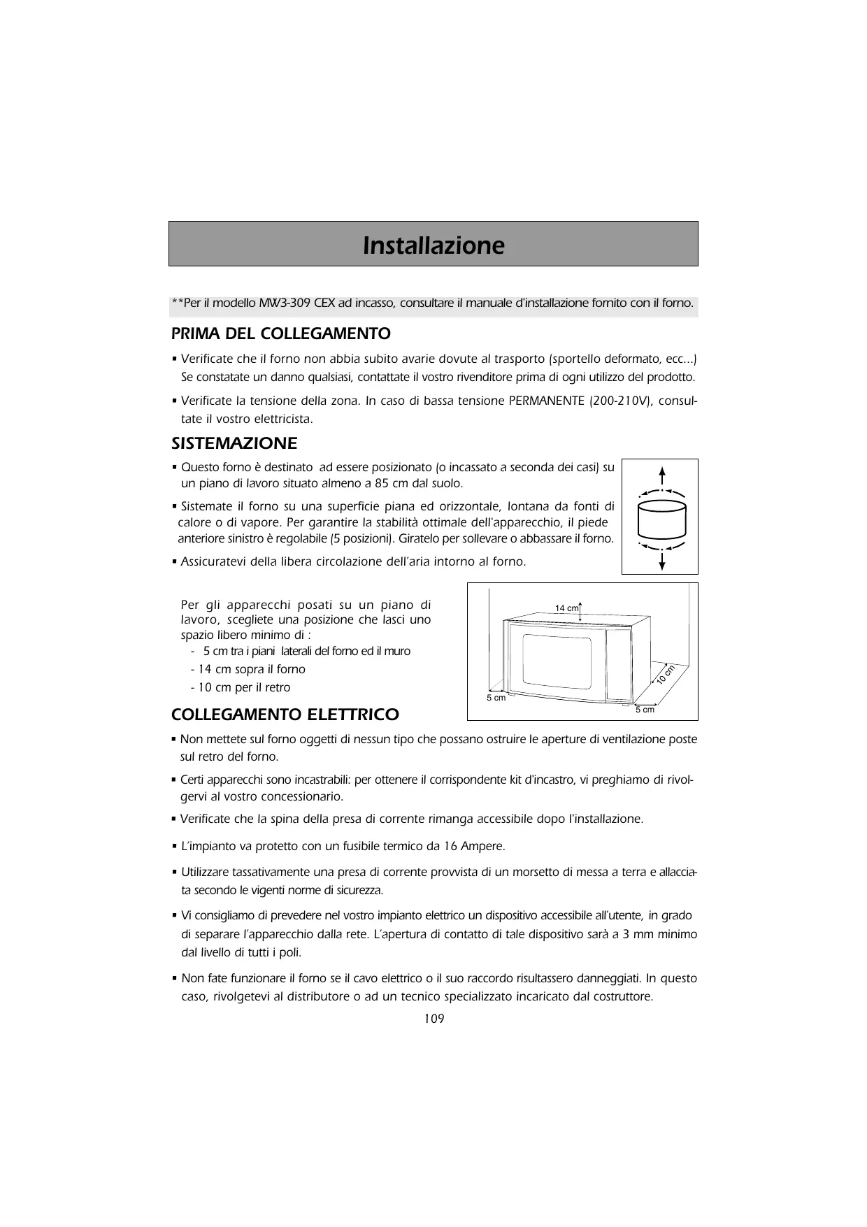 **Per il migliorato MW3-309 CEX ad incasso, consultare il manuale d'installazione fornito con ilorno.