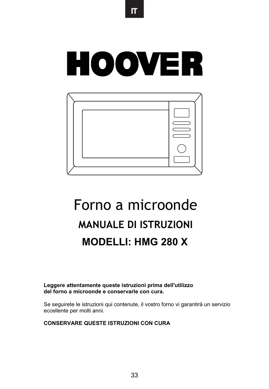 HMG 280 X - Microonde HOOVER - Manuale utente e istruzioni gratuiti