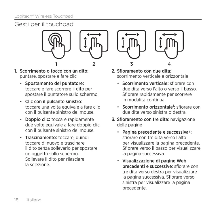 WIRELESS TOUCHPAD - Dispositivo di input LOGITECH - Manuale utente e istruzioni gratuiti