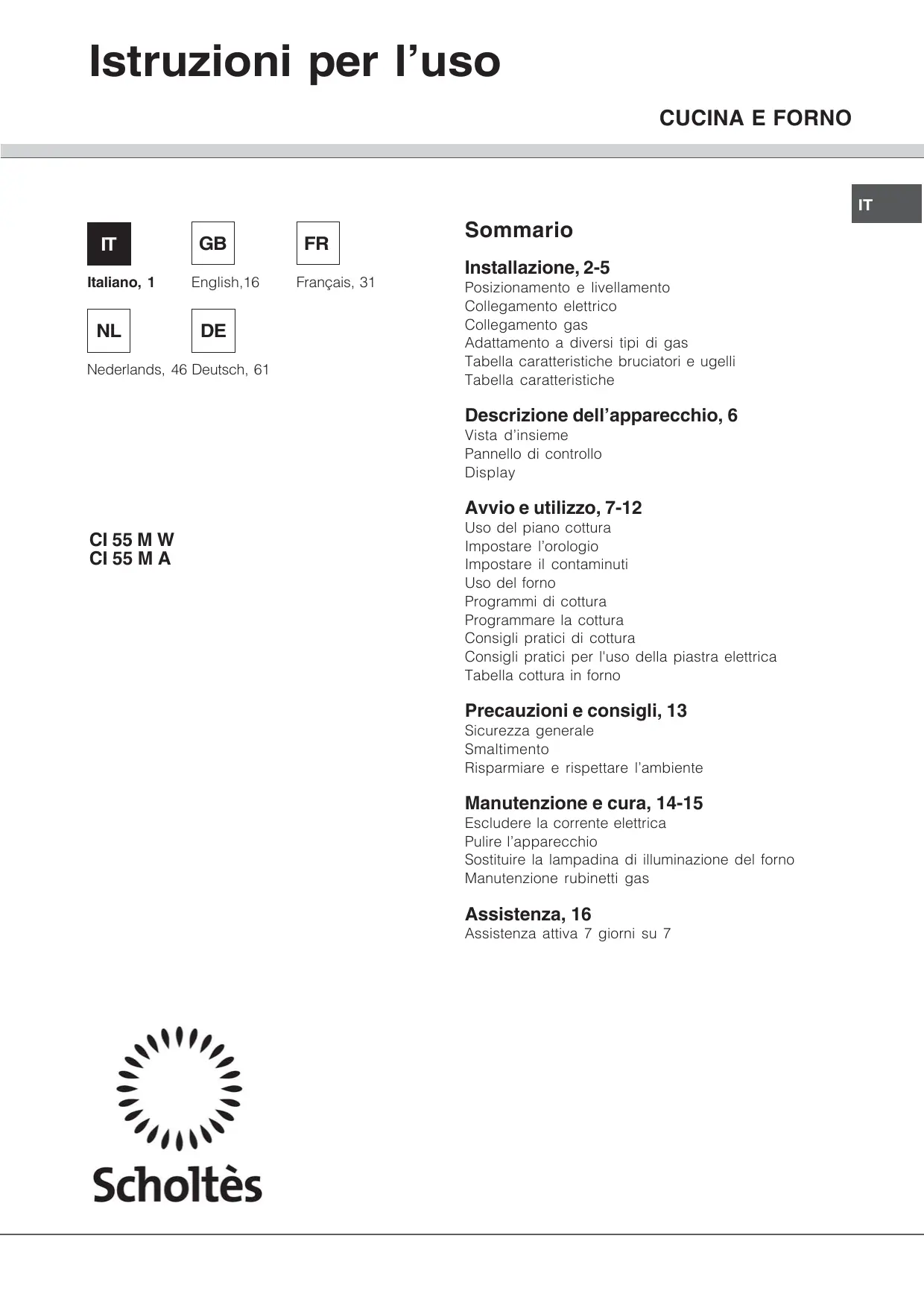 CI 55M A - Fornello da cucina SCHOLTES - Manuale utente e istruzioni gratuiti