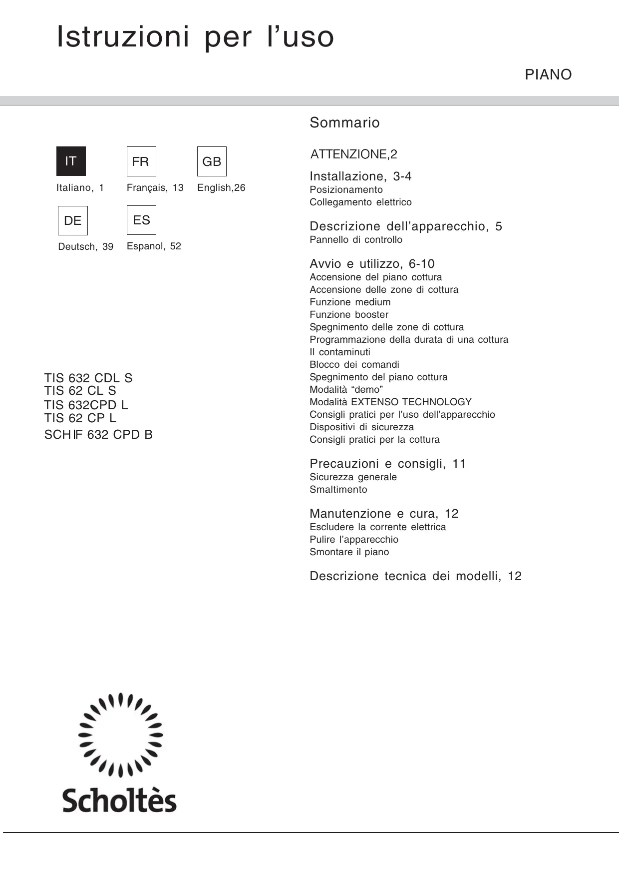 SCH IF 632 CPD B - Piano cottura SCHOLTES - Manuale utente e istruzioni gratuiti