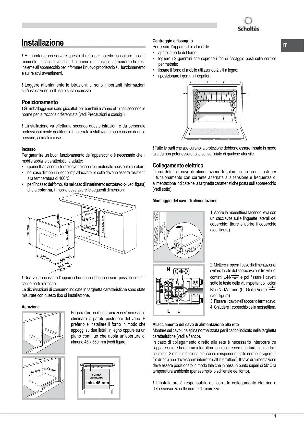 ! Lors de son premier allumage, faire fonctionner le four à vide, porte fermée, pendant au moins une heure en réglant le thermostat sur le maximum. Puis éteindre le four, ouvrir la porte et aérer la pièce. L’odeur qui se dégage est due à l’évaporation des produits utilisés pour protéger le four.