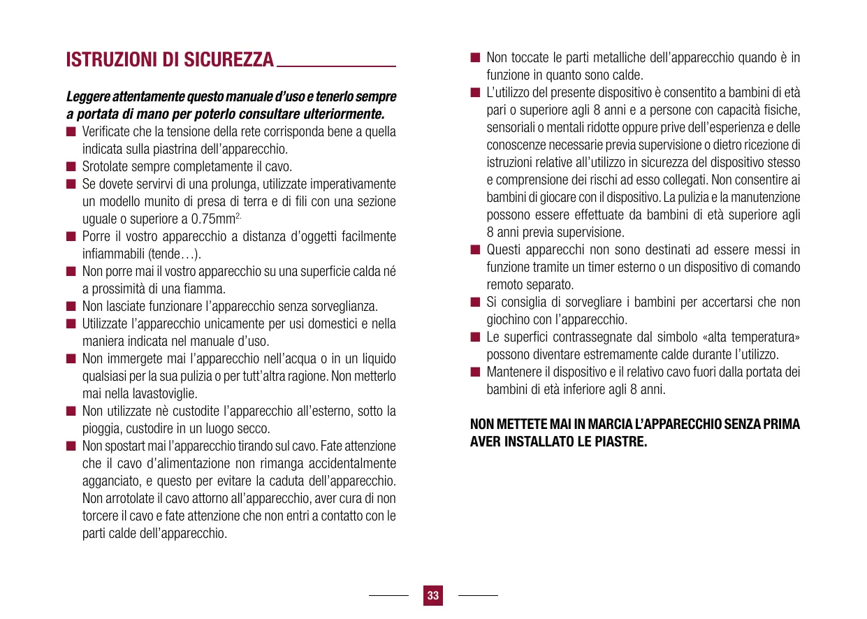 , son service après-vente ou une personne qualifiée et agréée par et ce afin d’éviter un danger pour l’usager. Le cordon utilisé est un H05RRF 3G 0,75 mm². Ces appareils sont conformes aux directives 2006/95/CE, 2004/108/ CE, DEEE 2002/96/CE, RoHs 2002/95/CE et au règlement CE contact alimentaire 1935/2004.