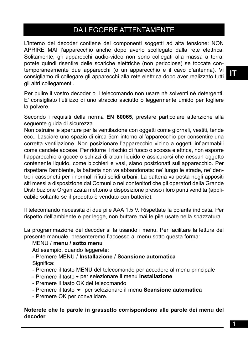Conformément aux obligations faites par le respect de la norme EN 60065, nous attirons votre attention sur les éléments de sécurité suivants. Il convient de ne pas obstruer les ouvertures d'aération avec des objets tels que journaux, nappes, rideaux, etc. Une distance minimale de 5 cm est requise autour de l'appareil pour assurer une aération suffisante. || convient de ne pas placer sur l'appareil, ou à proximité, des sources de flammes nues telles que des bougies allumées. L'appareil ne doit pas être exposé à des égouttements d'eau ou des éclaboussures et de plus, aucun objet rempli de liquide tel que des vases ne doit être placé sur l'appareil. Lorsque la prise d'alimentation est utilisée comme dispositif de déconnexion, ce dispositif doit demeurer aisément accessible.